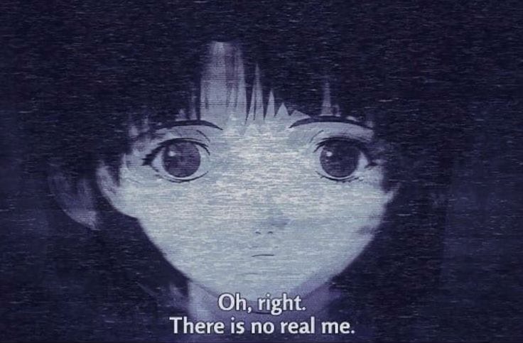 If you relate to this post at all, I would highly recommend Lain. It’s also just a really enticing show.